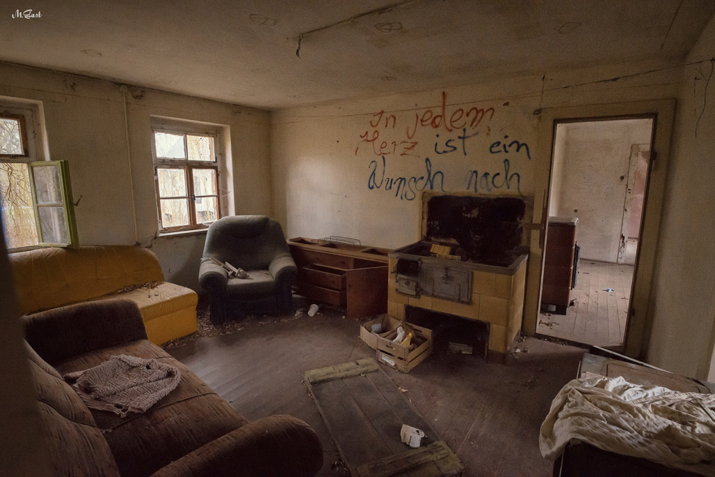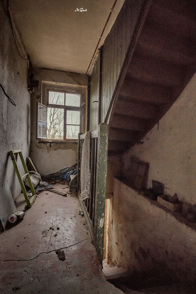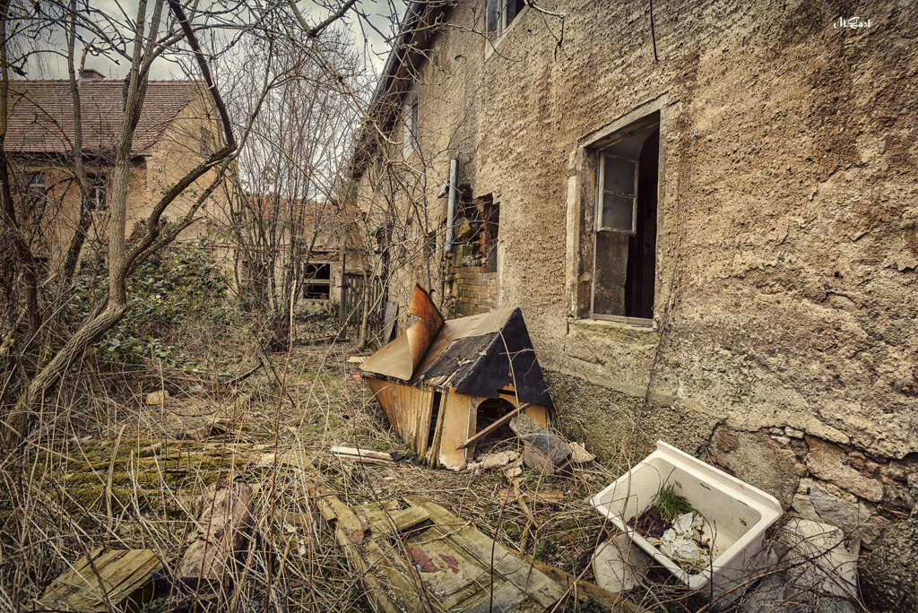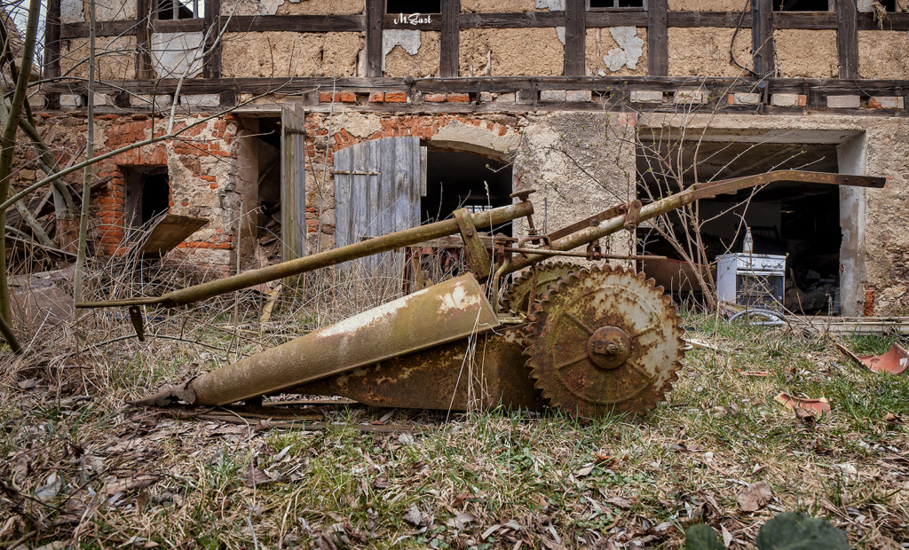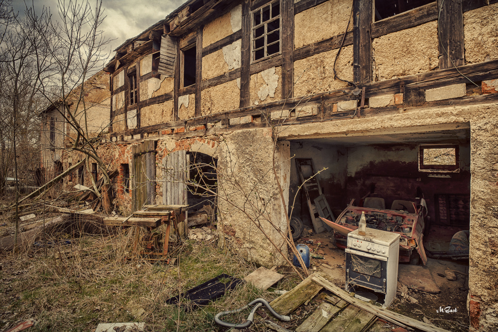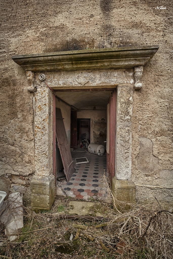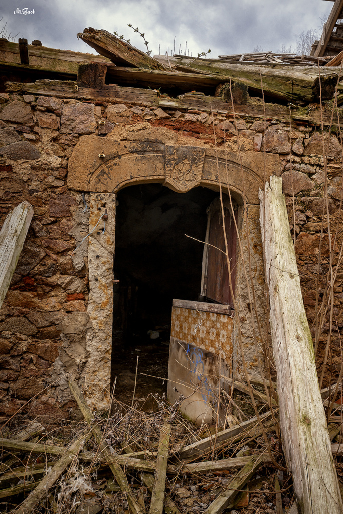 Der Eingang zum Hof wirkt düster und beklemmend. Das gusseiserne Tor mit seinem verfallenen Hintergrund wirkt bei diesem Wetter wie aus einem typischen Horrorfilm. Irgendwo, weit abgeschieden im Nirgendwo, haben Teenager eine Panne mit dem Auto und müssen nun irgendwie Benzin oder einen Ersatzreifen beschaffen. Die Geschichte kann sich jeder weiter denken, der auf Horrorfilme steht. So viel kann ich aber sagen. Das Ganze geht nicht gut aus.